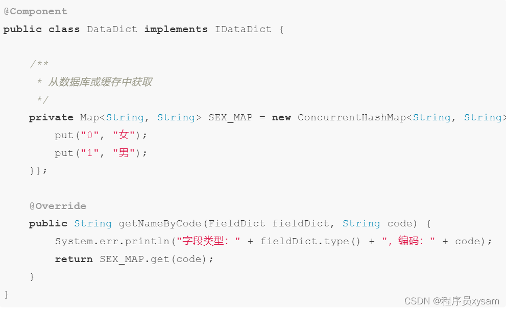 实现 IDataDict 接口提供字典数据源,注入到 Spring 容器即可。