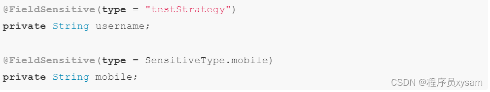 属性 @FieldSensitive 注解即可自动按照预设策略对源数据进行脱敏处理,默认 SensitiveType 内置 9 种常用脱敏策略。