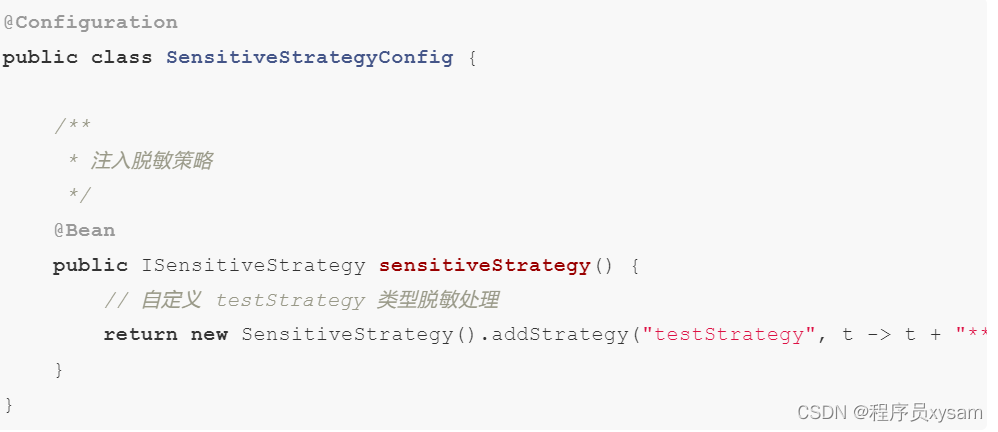 自定义脱敏策略 testStrategy 添加到默认策略中注入 Spring 容器即可。