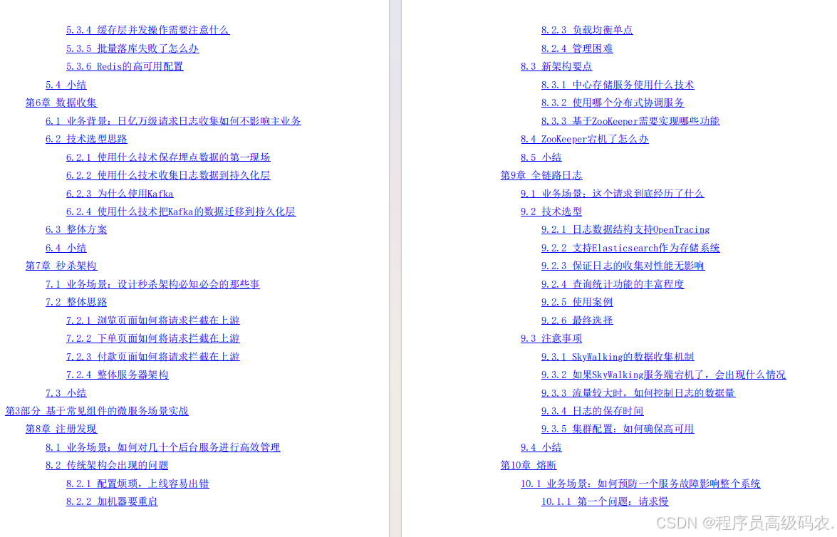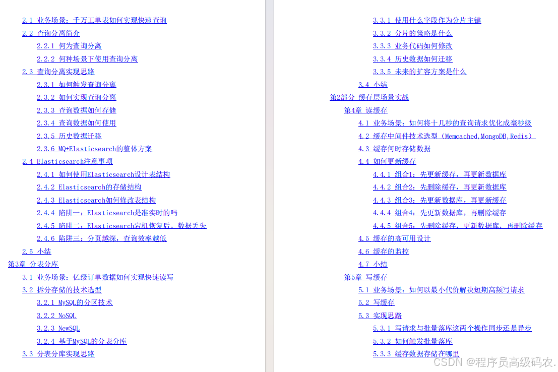• 第2部分:缓存层场景实战。主要讲解大流量时,如何避免流量直接压 垮数据库层。学完这后,当遇到缓存层场景问题,就知道如何进行架构设计 了。