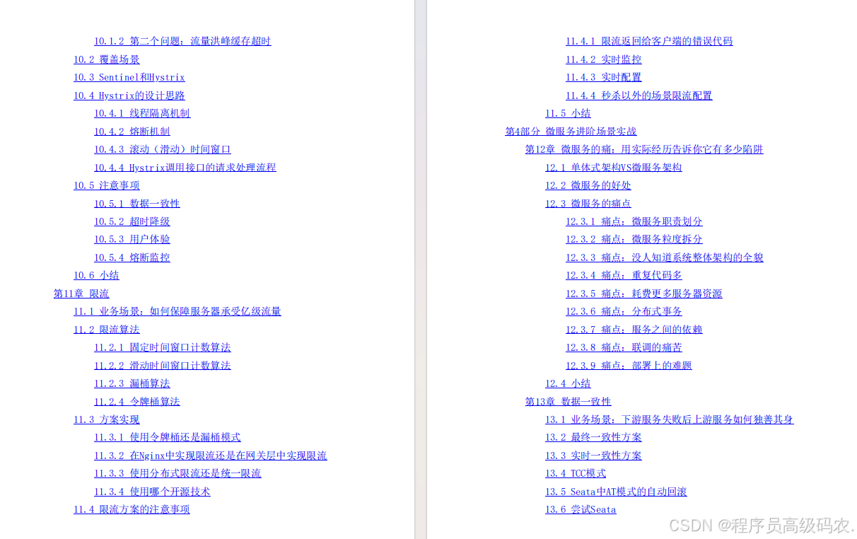 • 第4部分:微服务进阶场景实战。在学完基于常见组件的微服务场景实 战内容后,这个模块将先用各种真实经历让你提前体会在大公司使用微服务 时会面临的一些问题,然后通过真实的架构经历来讲解使用无常见组件可用 的微服务时所面临的一些问题及其解决方案。
