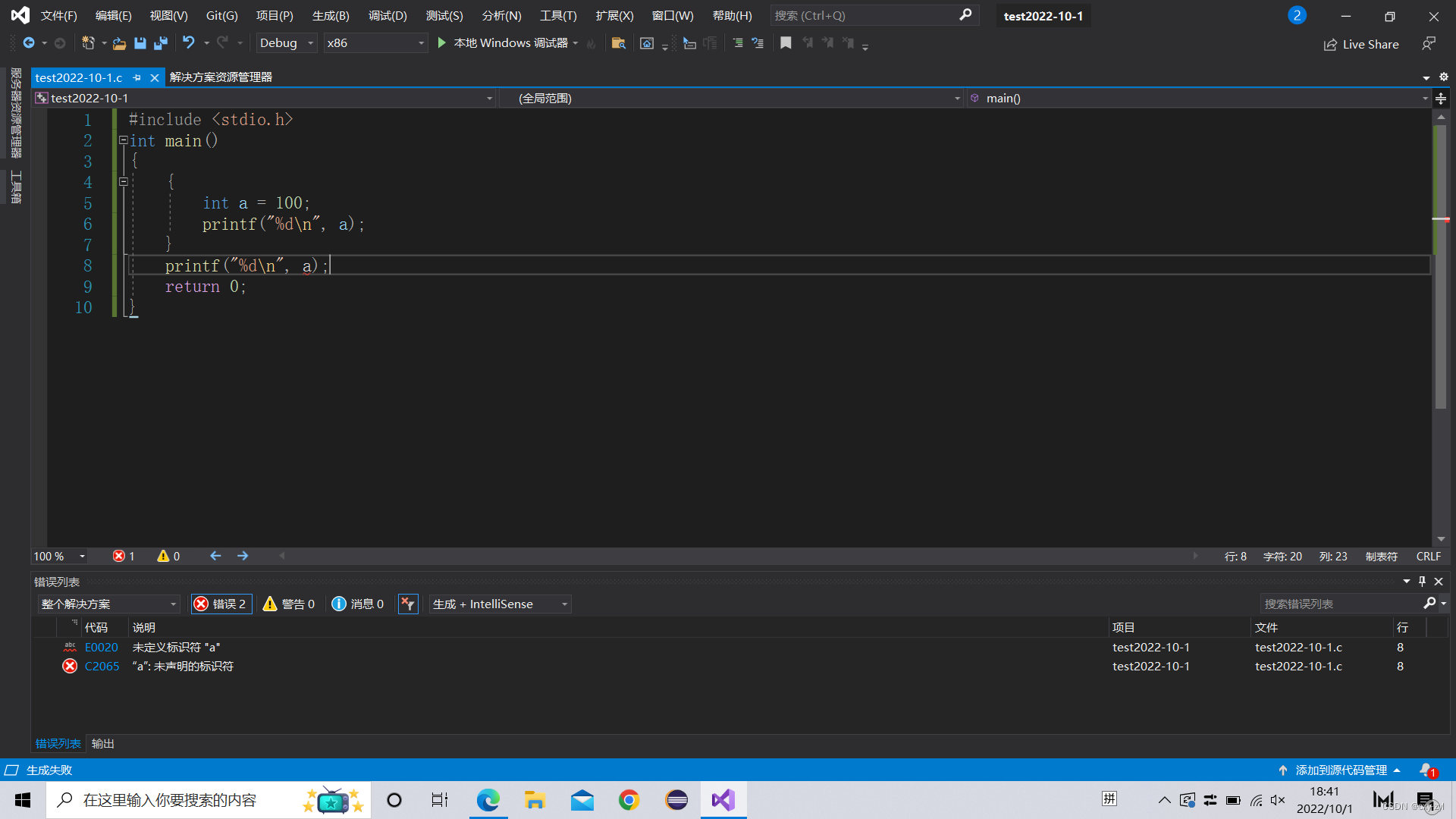 这里要注意,用const修饰变量的时候,一定要给变量初始化,否则之后就不能再进行赋值了。