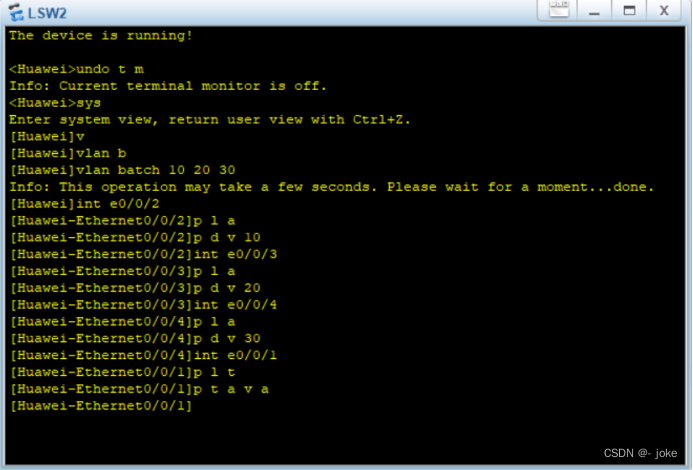 int e/0/0/1 p l t p t a v a 因在两个交换机之间所以需要中继模式