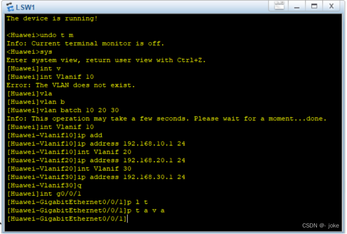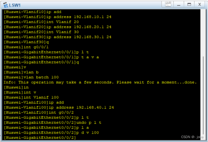 进入三层交换机创建vlan10 20 30 vlan batch 10 20 30