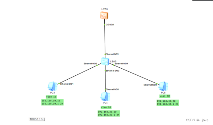 进入2 3 4接口 int e/0/02 int e/0/03 int e/0/0/4 规定端口类型p l a 分配接口p d v 10 20 30