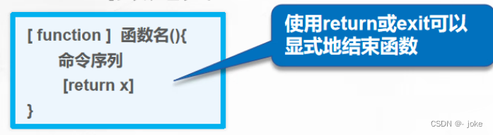 return:表示退出函数,并返回一个退出值,用$?可以显示这个值;退出值是有范围的0-255,除以256取余