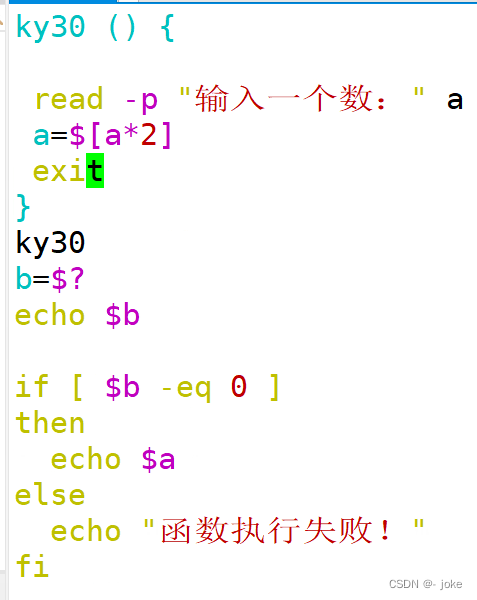 exit:作用于整个脚本,立即终止,没有返回码,脚本会立刻停止运行 自行输出echo $?