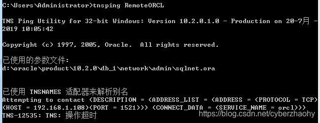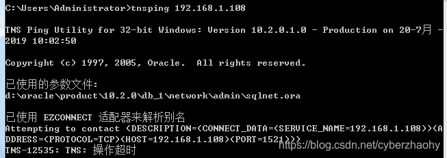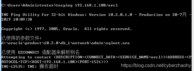 已使用 EZCONNECT 适配器来解析别名 TNS-12535: TNS: 操作超时
