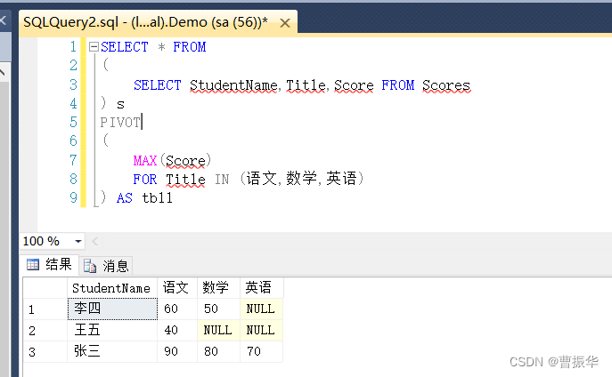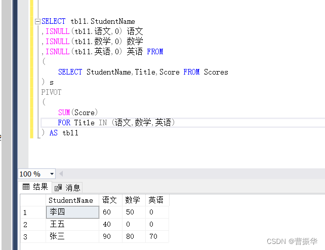 MAX(CASE Title WHEN '英语' THEN Score ELSE 0 END) AS '英语'