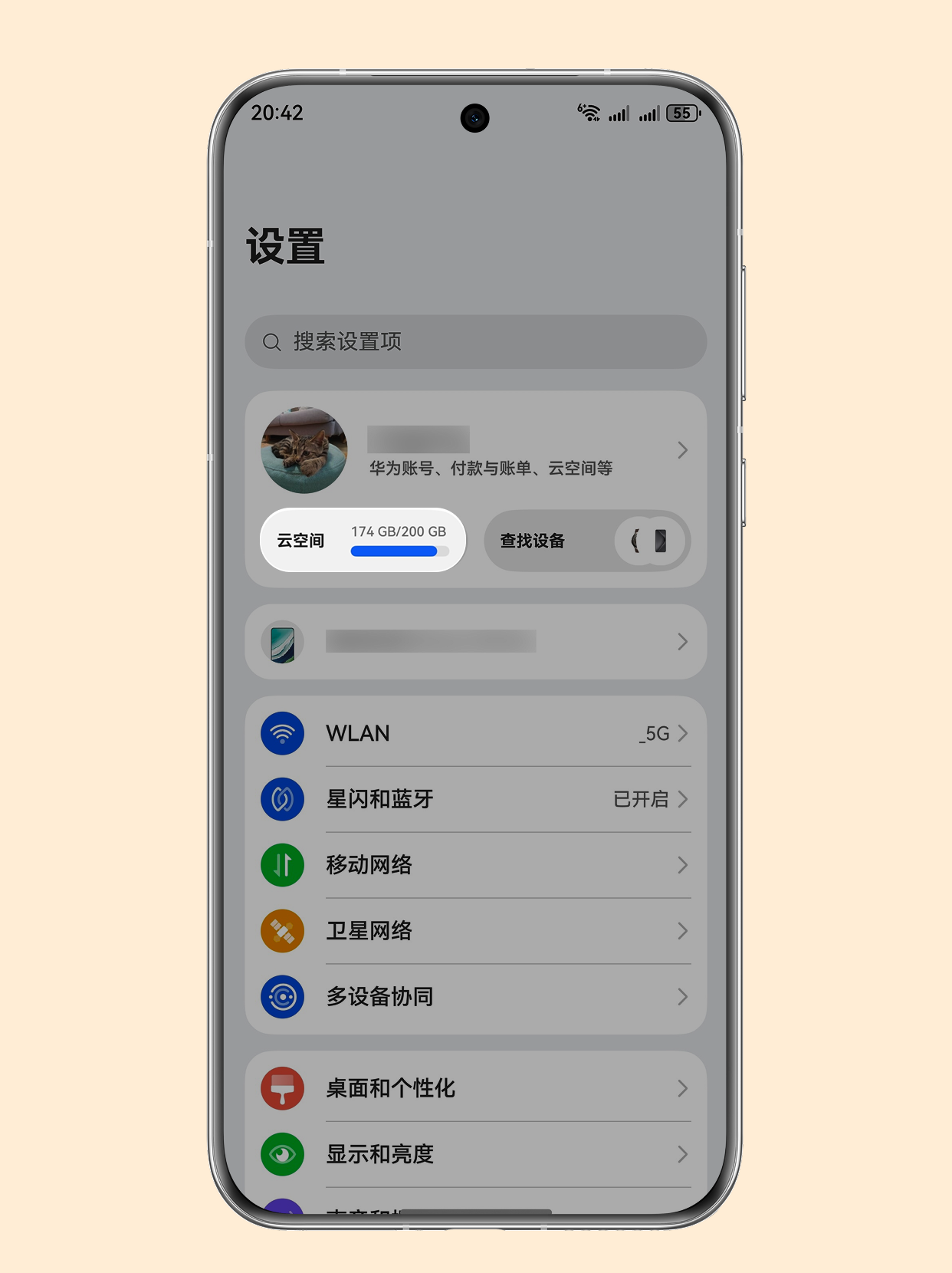 进入系统 「设置」 > 点击顶部 「华为账号」。