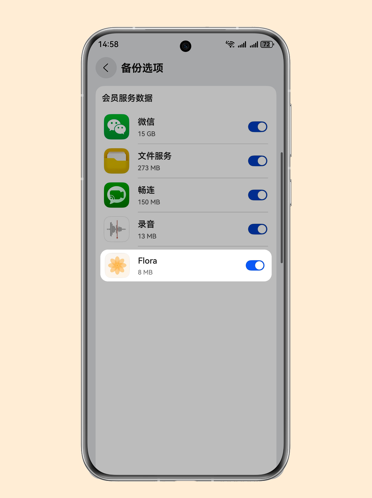 鸿蒙的云备份是「整应用」维度的快照恢复。