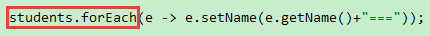 students.stream().forEach(e -> e.setName(e.getName()+"==="));