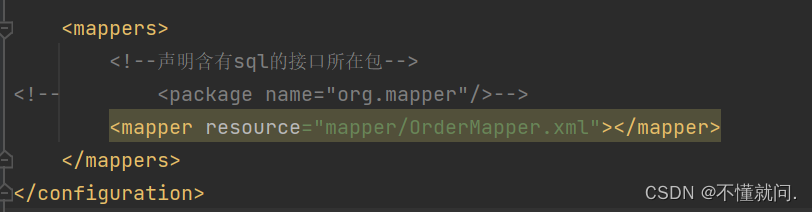 <mapper resource="mapper/OrderMapper.xml"></mapper>