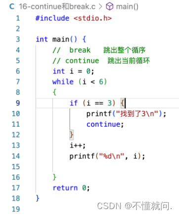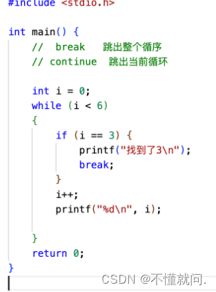 循环中break,某一条件满足时,不再执行循环体中后续重复的代码,并退出循环