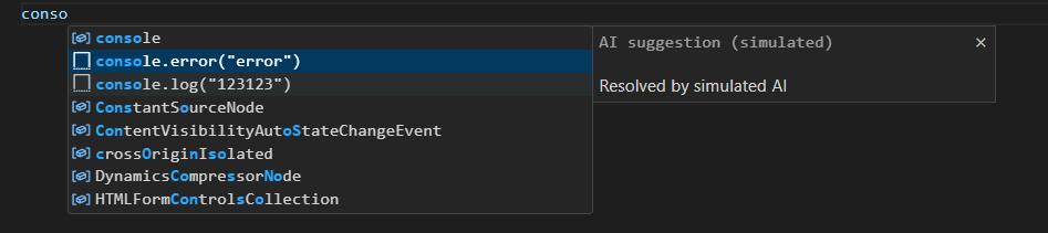 item.documentation = new vscode.MarkdownString('Resolved by simulated AI');