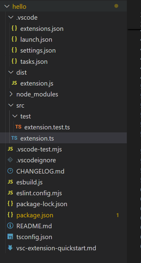 创建好之后,你会获得以下目录,extension.ts是主文件