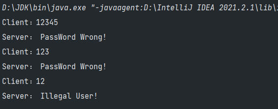- 若读口令次数超过3次,则发送Illegal User!给客户端,程序退出。否则向下执行步骤3)。
