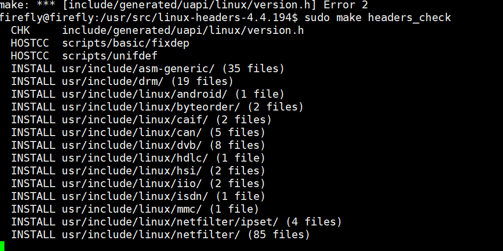 安装必要的环境库,进入/usr/src/linux-headers-4.4.194进行安装。