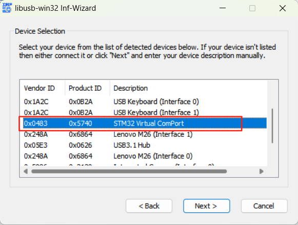 (3)选择0x0483的VID ID设备,点击Next>进入下一步。
