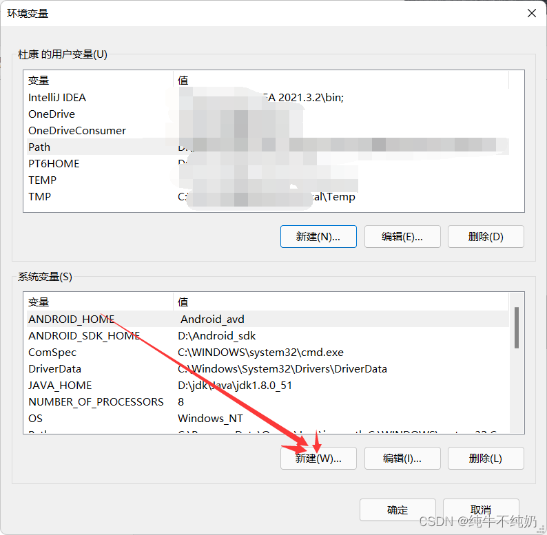 2. 配置JAVA_HOME,选择“用户变量”新建,输入jdk安装路径