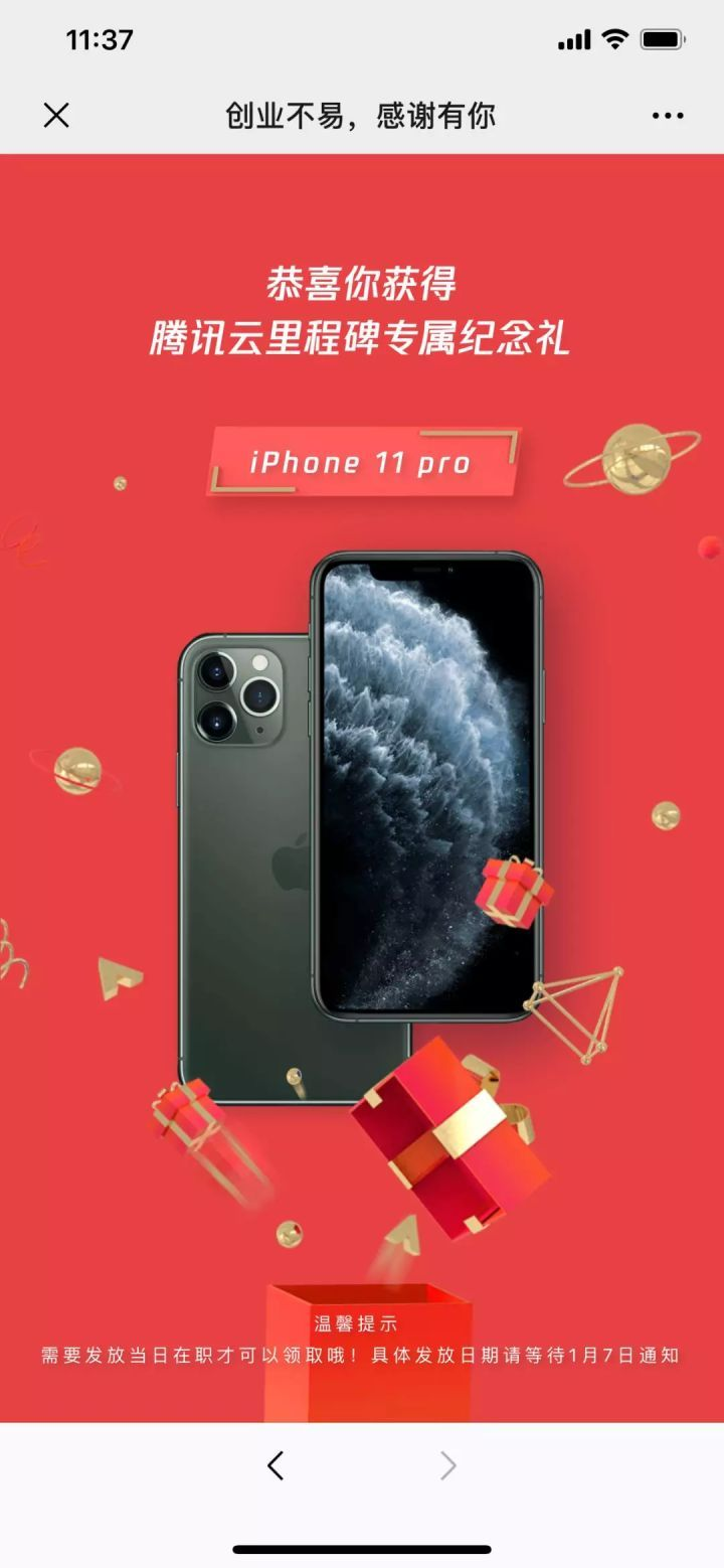 12 月 19 日,鹅厂腾讯发钱的消息又像往年一样引来了一群柠檬精。除了微信支付团队获得 2 亿元奖金的消息之外,一张腾讯云团队每个员工奖励一部 iPhone 11 Pro 的 H5 页面截图也不断地轰炸着朋友圈。