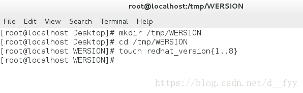 2.用一条命令建立 8 个文件 redhat_versionX ( x 的范围为 1-8 )redhat_versionX 这些文件都包含在 /tmp 目录中的 VERSION 中