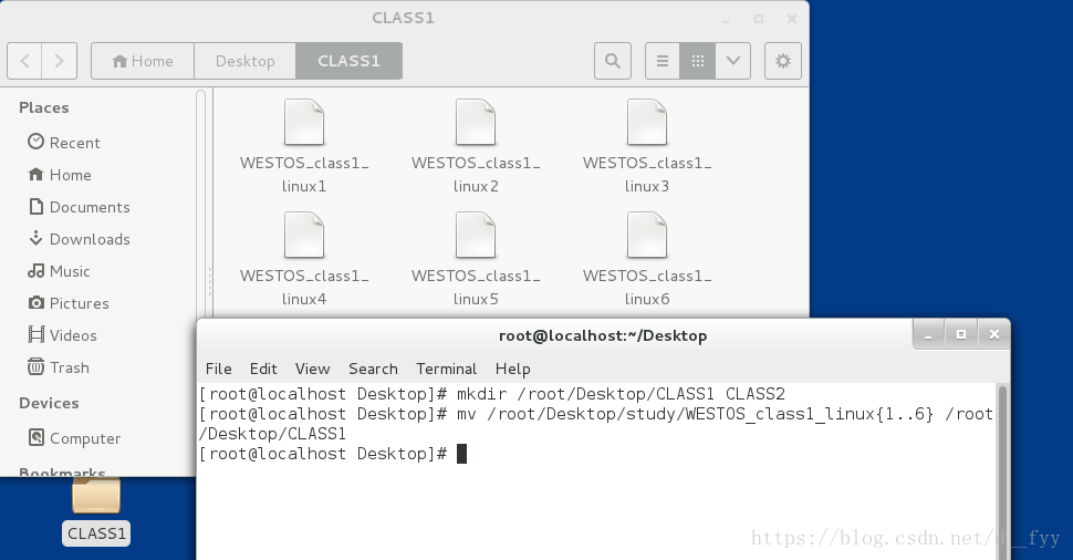 5.用一条命令把 WESTOS_classX_linuxY 中 class1 的文件移动到当前用户桌面的 CLASS1 中