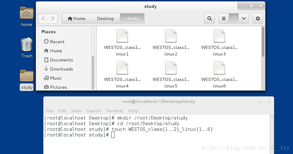 1.用一条命令建立 12 个文件 WESTOS_classX_linuxY(X 的数值范围为 1-2 , Y 的数值范围为1-6)这些文件都包含在 root 用户桌面的 study 目录中