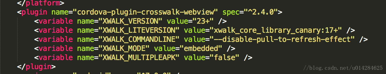 郁闷啊,怎么不支持armeabi-v7a了?后来推测肯定是Crosswalk通过productFlavors打成多个apk包方式了,也就是共享模式,这样可以缩小apk包的体积,缺点是要打出多个apk包,不同cpu架构的手机装最适合的apk包,但这样子很不方便,查下config.xml吧