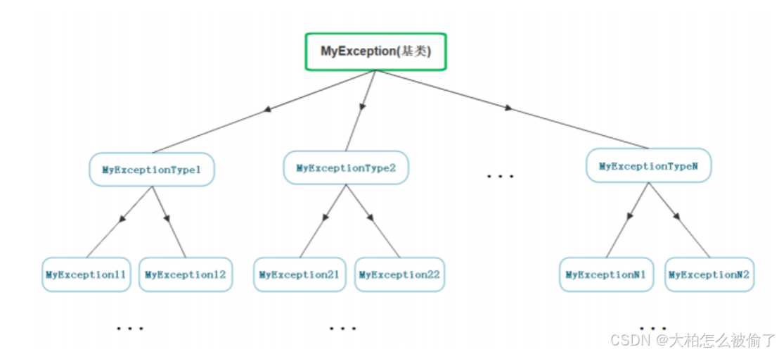 在实际使用中很多公司都会定义自己的异常体系进行规范的管理,如果一个项目中随意抛出异常,会导致无法查出根源,所以实际中都会定义一套继承的规范体系,这样大家抛出的都是继承的派生类对象,捕获一个基类就可以了。