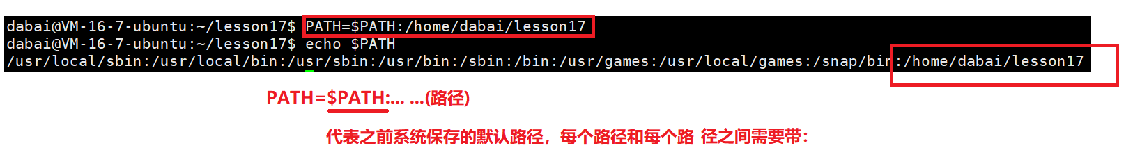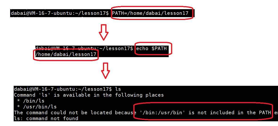- 但是如果将指令写成:PATH=(路径) ,就变成了覆盖系统默认的路径