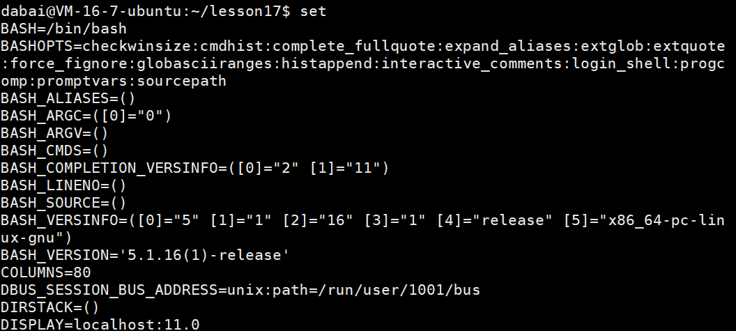 - set 命令可以查找系统中所有的变量,包括环境变量、本地变量