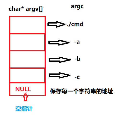 - argv是一个指针数组,这个数组里面保存的是字符串的地址,是一个向量表