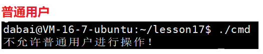 printf("不允许普通用户进行操作!\n");