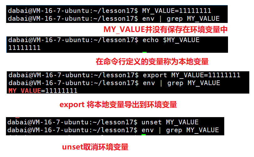 - export:设置一个新的环境变量