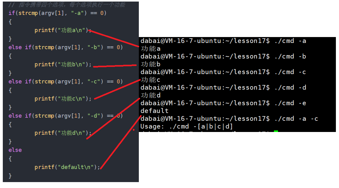 - 命令行参数的一个特殊用途:为指令、工具、软件等提供命令行选项的支持!