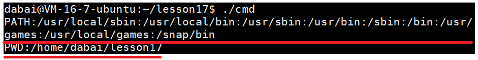 - 此时,就可以获取到环境变量PATH和PWD