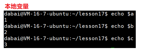 本地变量,只会在本bash进程中有效,不会被子进程所继承