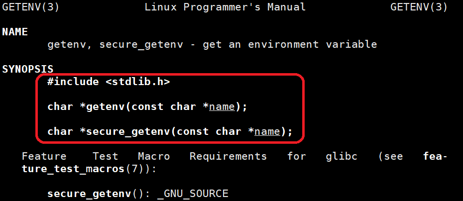 getenv()使用系统调用接口获取环境变量