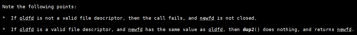 - newfd是oldfd的一份拷贝,两个文件描述符中最后全部描述的是oldfd