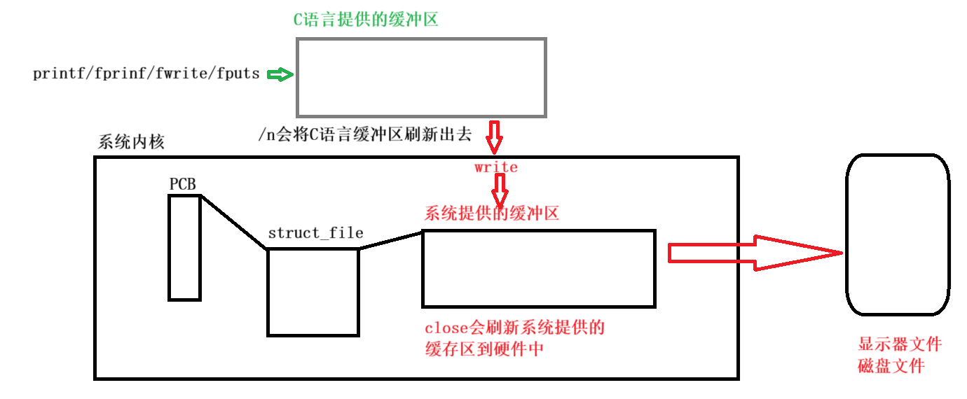 目前可以认为,只要将数据刷新到内核,数据就可以到硬件了,或者说是在C语言层面提供了一个缓冲区。