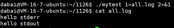 【理解】输出重定向后,将1号文件描述符指向all.log文件,然后2>&1的意思是将1号文件描述符写到2号文件描述符里面,1号文件描述符里面是all.log文件,然后2号也将指向all.log。