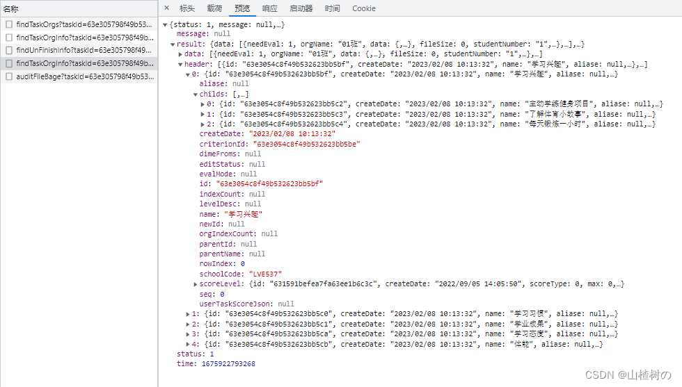 data:表主体是一个数组,数组里每一项都会对应一个map集,map集的id又对应着表头树结构每个节点最子级项,