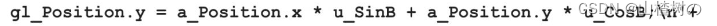' gl_Position.y = a_Position.x * u_SinB + a_Position.y * u_CosB;\n' +