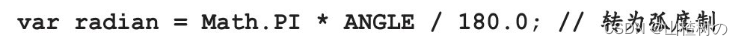 var radian = Math.PI * ANGLE / 180.0; // 转换为弧度