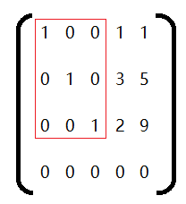 如下矩阵,其第4行第4个元素为0,所以无法消去1到3行第4个的元素,其左边的矩阵等价于右边的矩阵