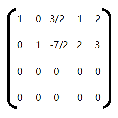 阶梯形矩阵中,每行开头的元素是1,且它所在的列其他元素为0,则称简化的阶梯形矩阵,如下便是一个简化的阶梯形矩阵