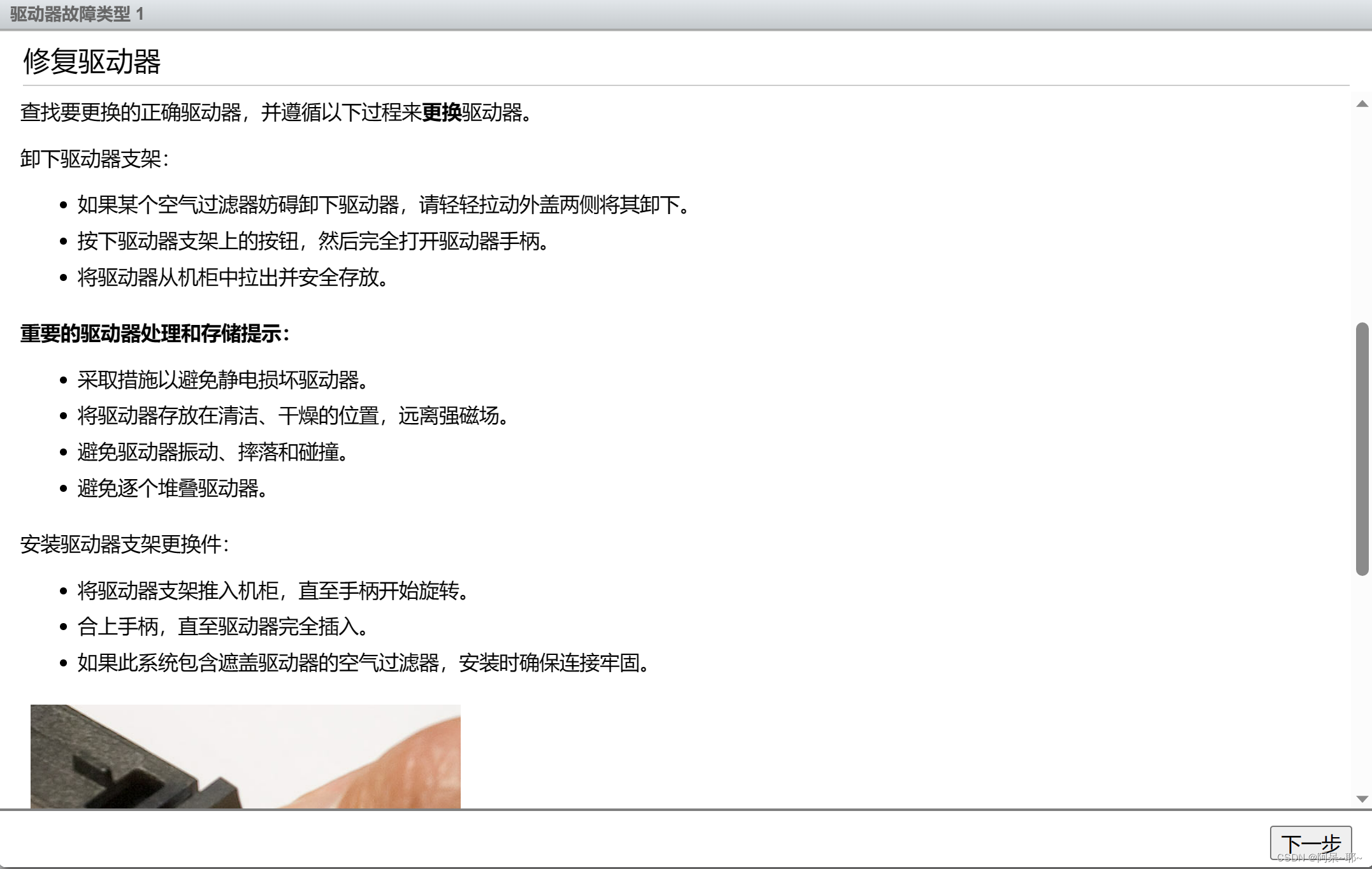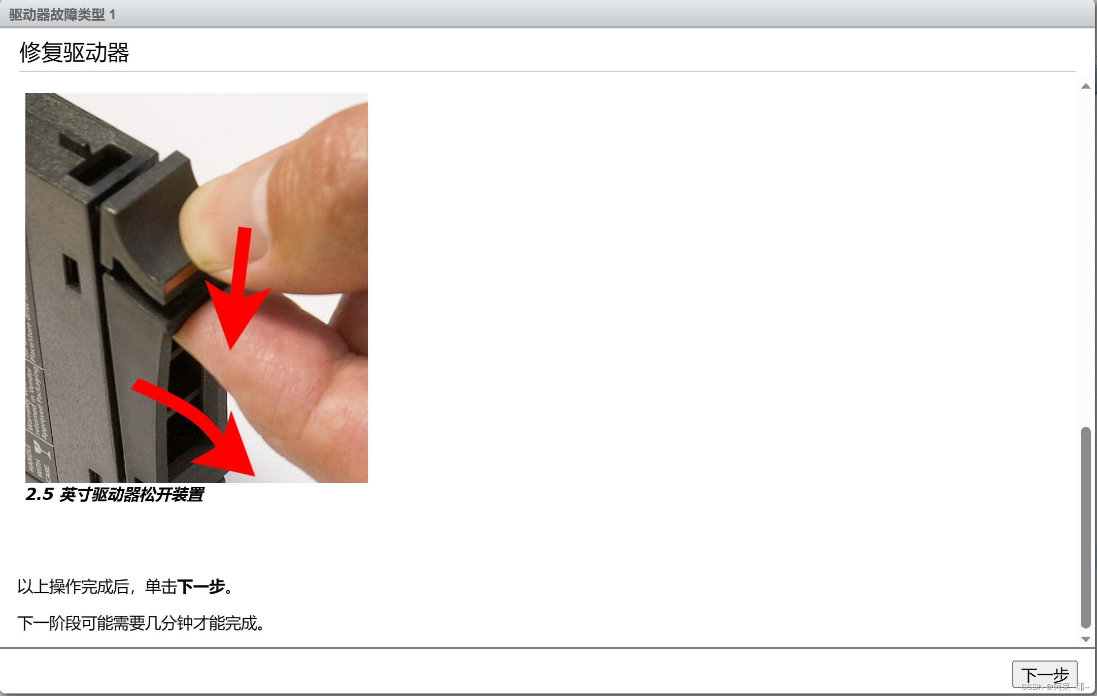 这一步就要去把坏的硬盘拔出,更换新的硬盘上去,更换好后再去点击下一步