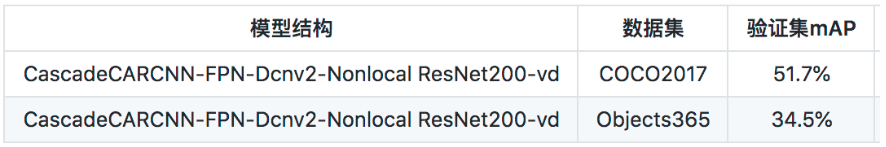 wget https://paddlemodels.bj.bcebos.com/object_detection/oidv5_cascade_rcnn_cls_aware_r200_vd_fpn_dcnv2_nonlocal_softnms.tartar -xf oidv5_cascade_rcnn_cls_aware_r200_vd_fpn_dcnv2_nonlocal_softnms.tar