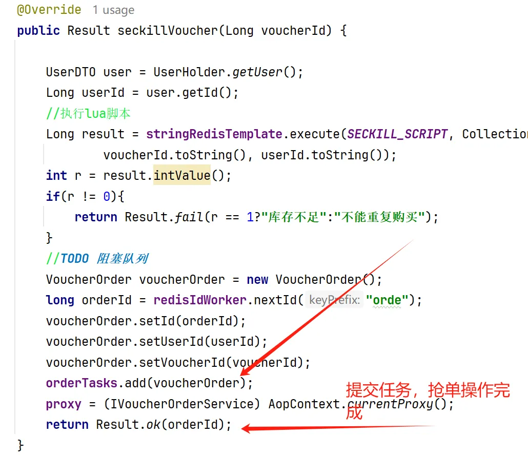 2.再 将 下 单 业 务 放 入 阻 塞 队 列 , 利 用 独 立 线 程 异 步 下 单